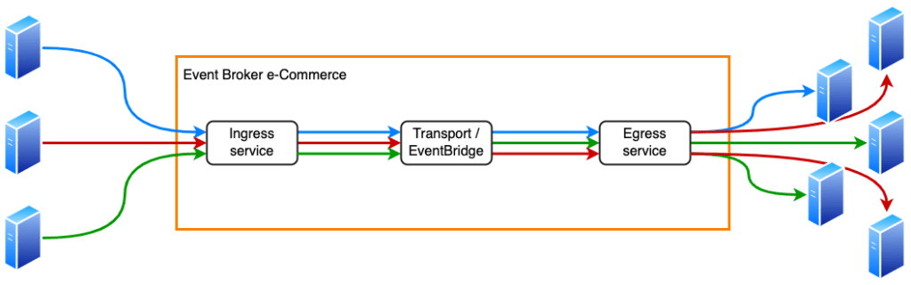 In this design, our customers no longer have dedicated infrastructure. Instead, a single ingress service is responsible for receiving all events, and a single egress service is responsible for forwarding all events.