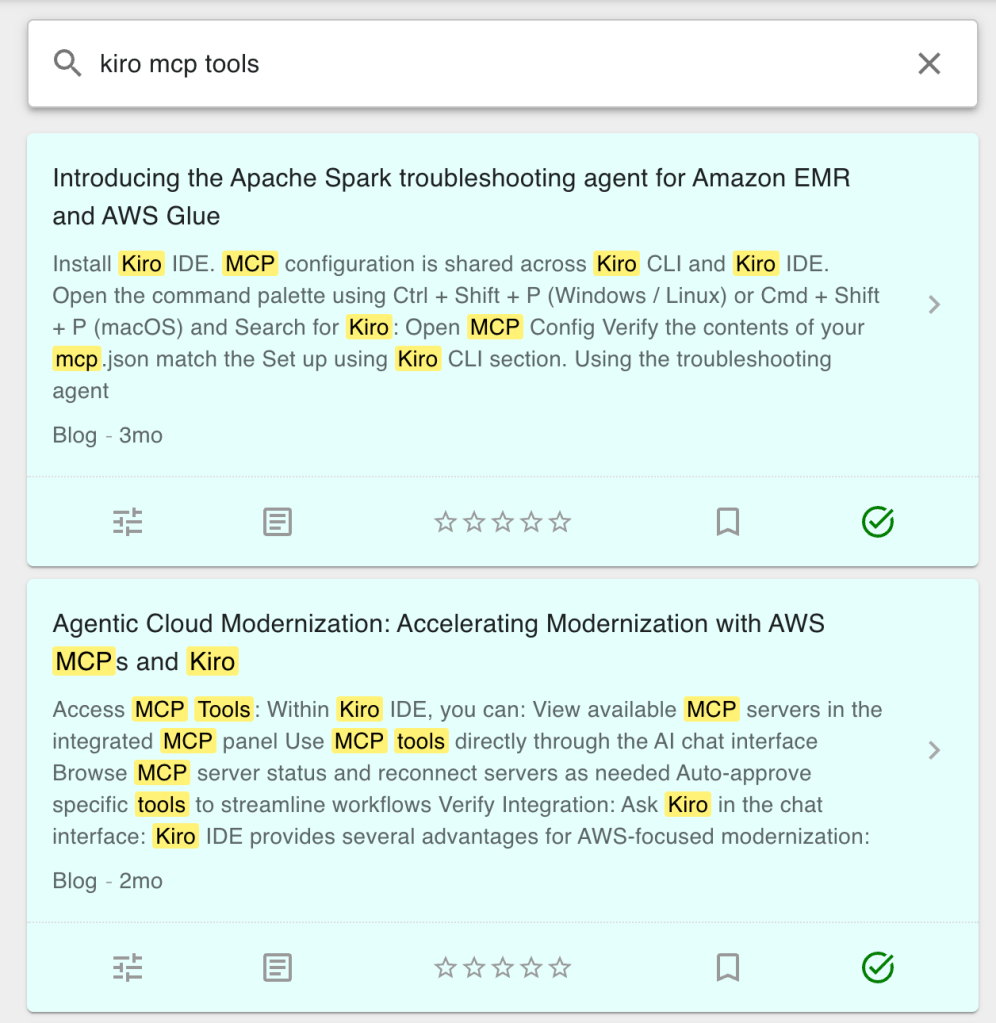 Imagine an AWS News agent: you could ask “when was python 3.13 released on AWS Lambda”, after which the agent could use the semantic search feature to search for “python 3.13 lambda”, retrieve the most relevant articles, and use the contents to accurately answer the question. This is exactly how modern AI agents work.